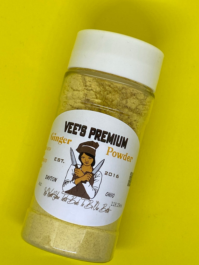 Vee’s Premium “Ginger Powder“ Is Dehydrated & Blended Into Powder From A Fresh Ginger Root. This Product Is Great With Your Hot Tea, Water, Pies, Homemade Hair Products & More